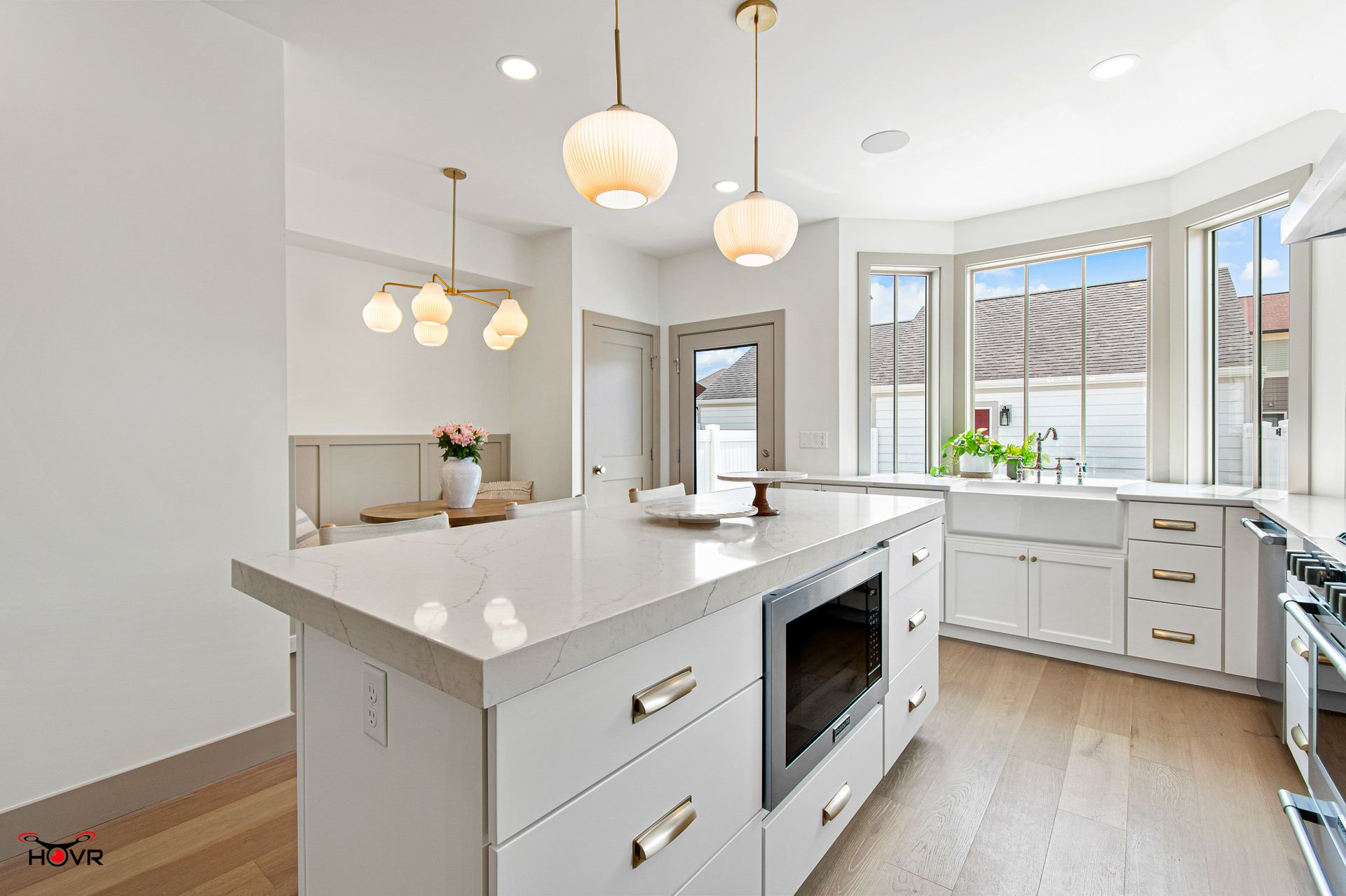 A significant focus of the project was the reconfiguration of the kitchen area. The original U-shaped kitchen, tucked away in a dark corner, underwent a complete transformation. The decision was made to relocate the kitchen into the bay window area, allowing for abundant natural light to fill the space. The strategic placement of the range directly in front of a window not only maximizes light but also creates a visually striking focal point in the kitchen. Adjacent to the kitchen, a custom-built dining bench was incorporated, adding versatility to the dining area. This thoughtful addition not only maximizes seating space but also contributes to a sense of cohesion and purposeful design within the living spaces.