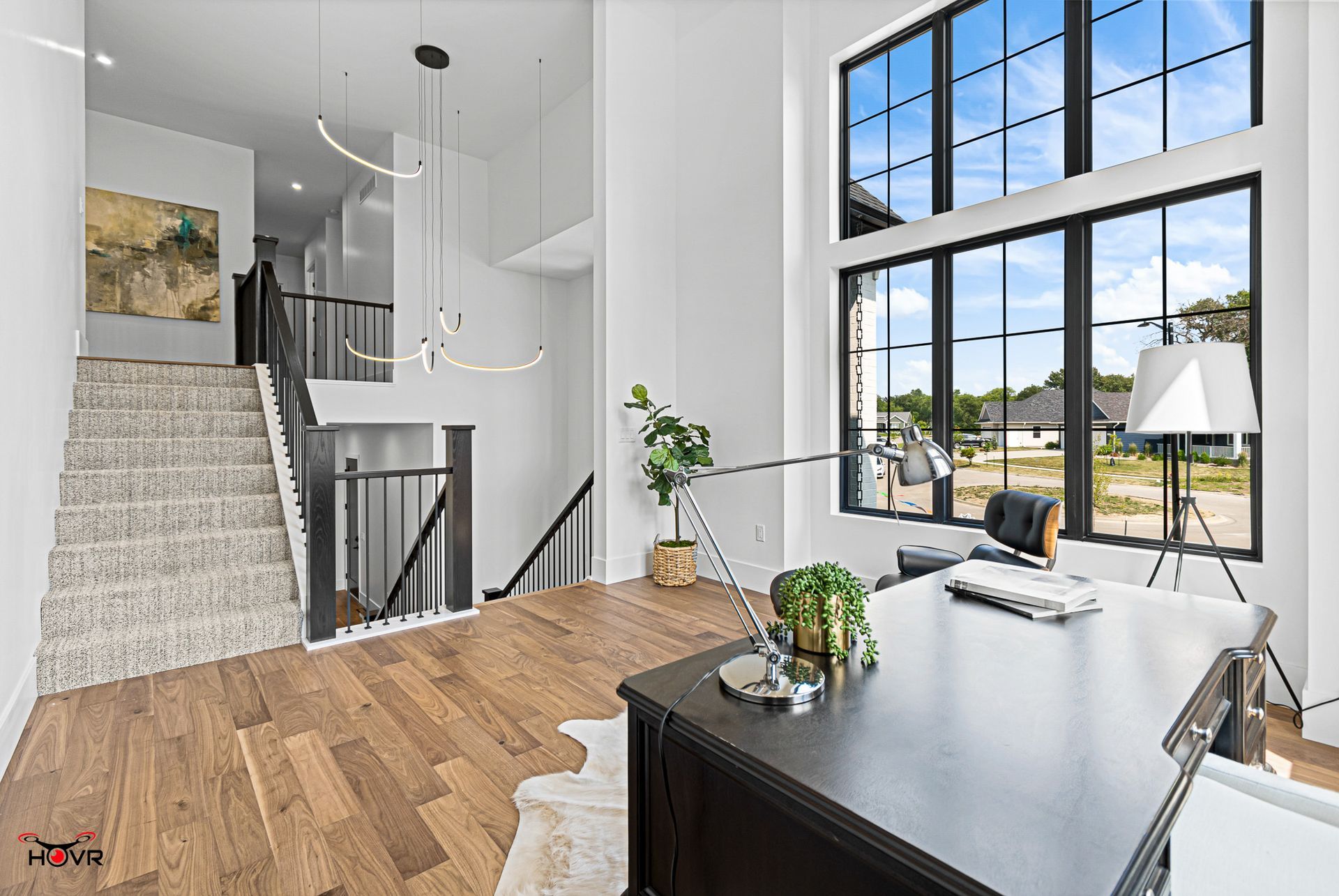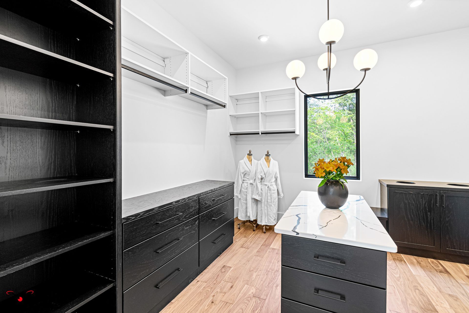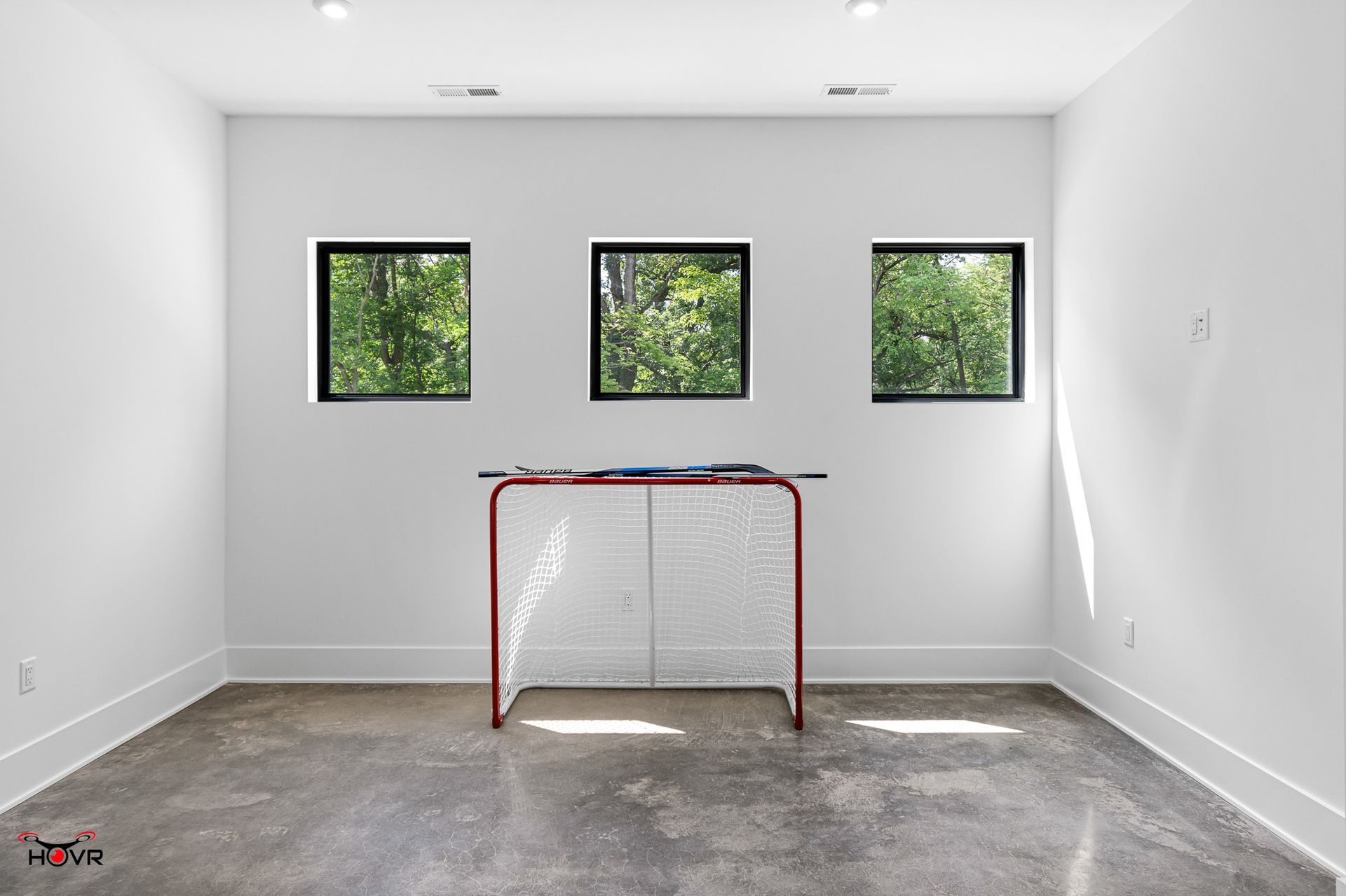 Introducing the award-winning 2023 Modern Chateau Estate meticulously crafted by Elevation Homebuilders. This residence seamlessly blends formal architecture with playful elements and contemporary detailing. With four bedrooms and five baths, this home features a unique layout with four bedrooms on the same level, each offering private bath access. The main level hosts an elevated study, while an in-home gym court, complete with 18' ceilings and a basketball hoop, adds a touch of luxury and recreation.