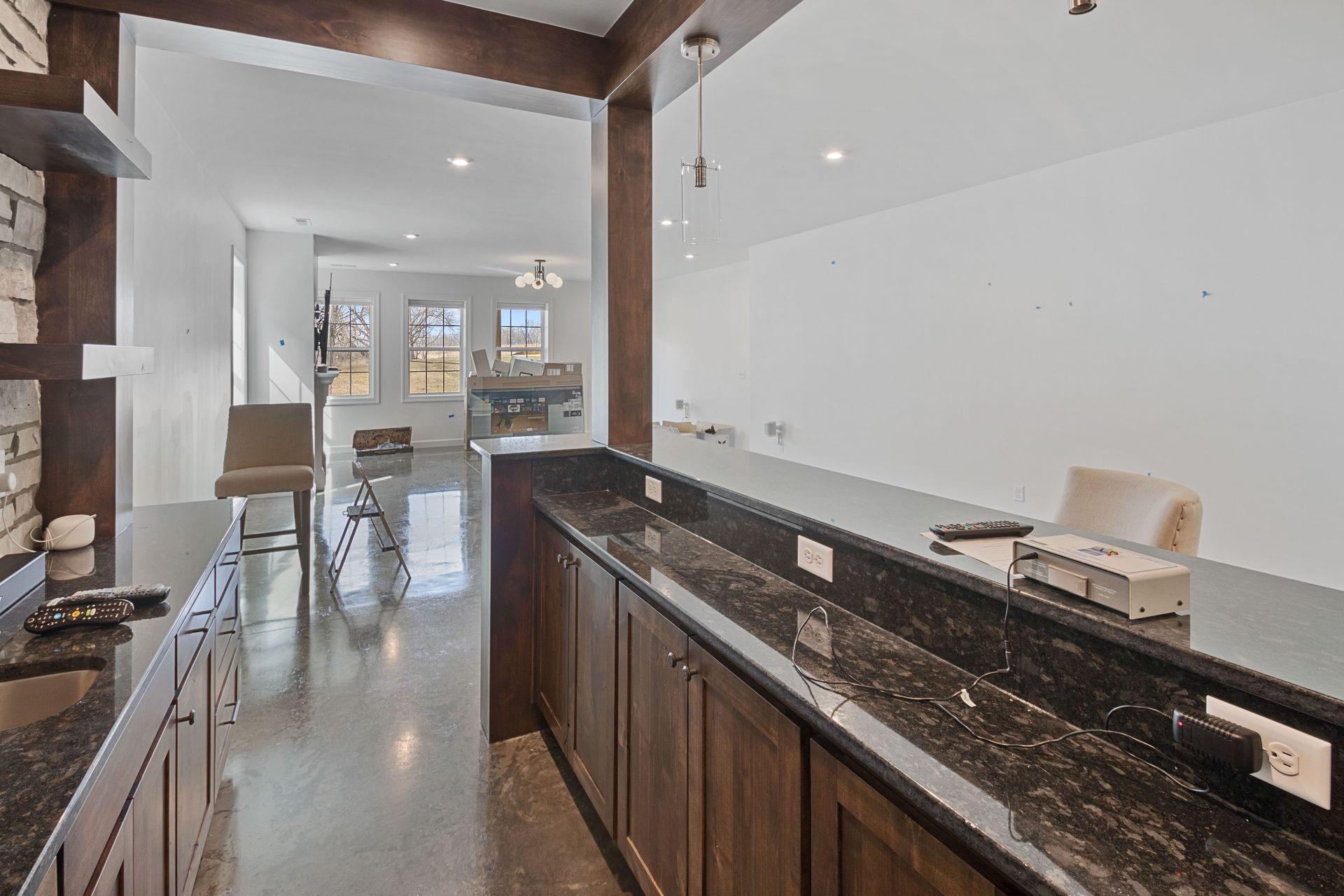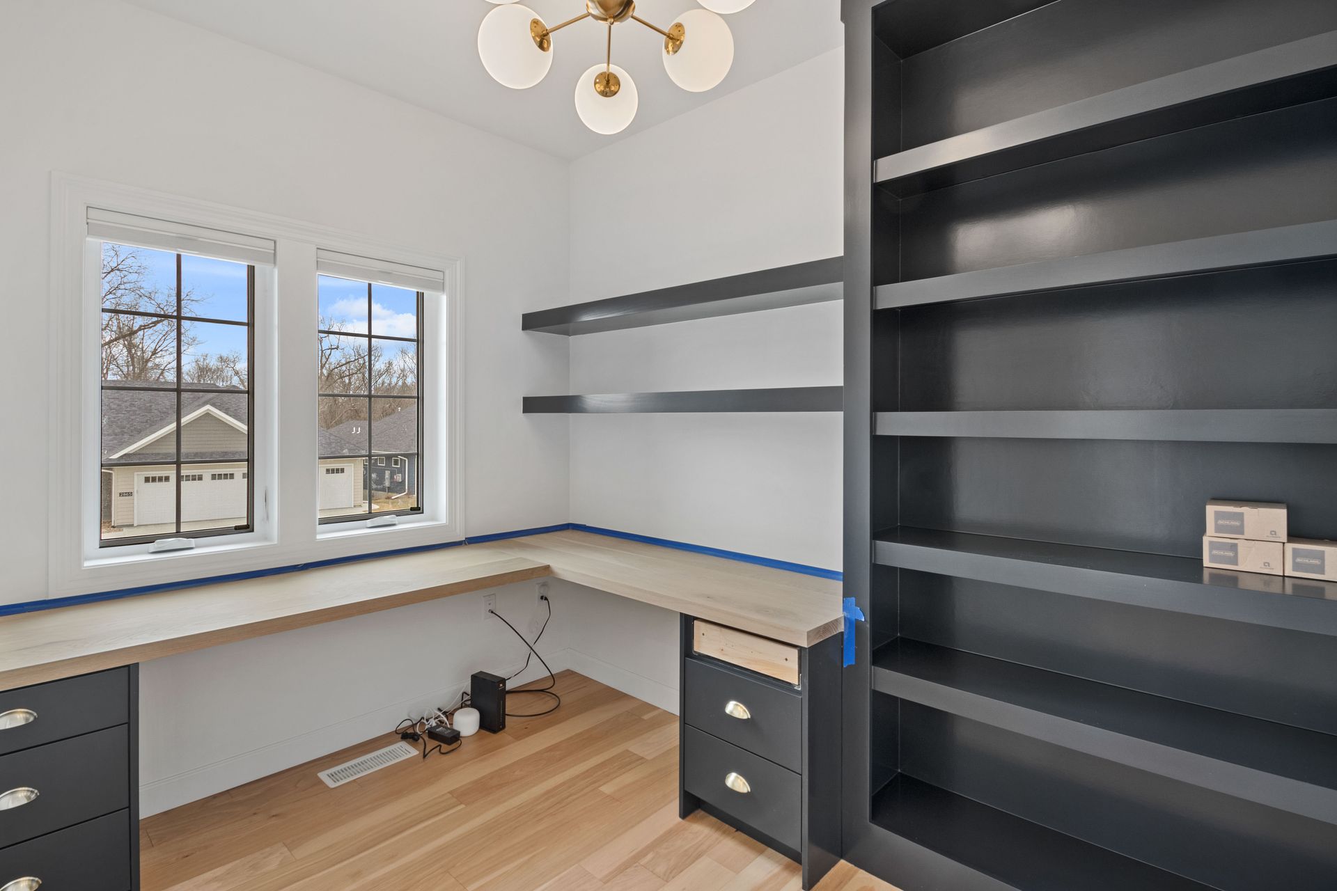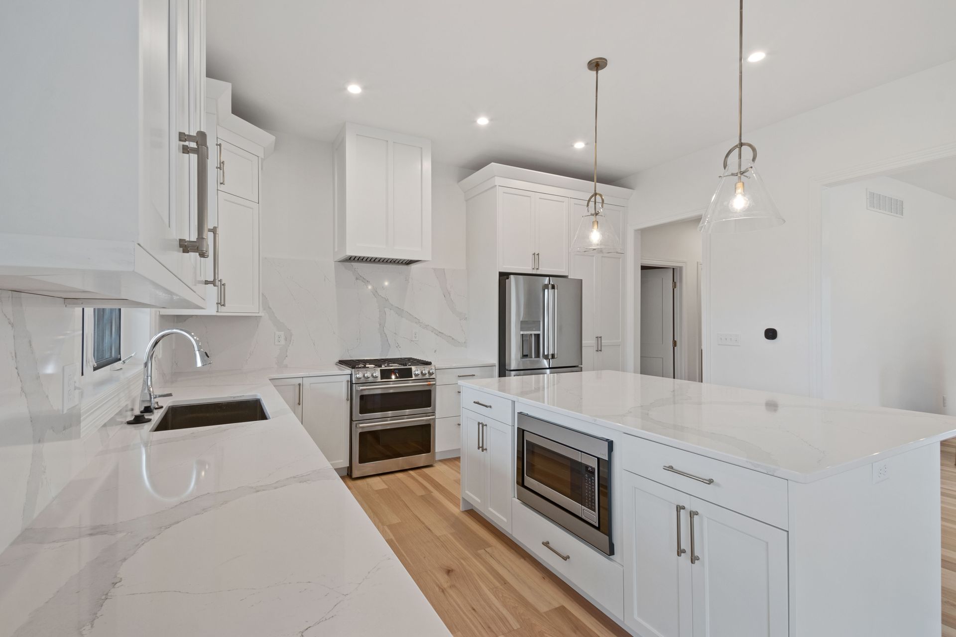 The 2021 Stately-Colonial by Elevation Home Builders. Large Colonial-style home w/ 6 bedrooms, 4.5 baths. Featuring 10' ceilings, abundant carpentry, two gas fireplaces, hardwood, slow-close cabinetry, quartz counters, stainless appliances, pantry, large eat-in island, mudroom, tiled baths, main-level master, tiled master shower, soaking tub, double vanity, master WIC, second master on upper level, built-in bookshelves, office, and loggia. LL includes large FR/rec, wet bar, 2 addit. bedrooms, and a bath.